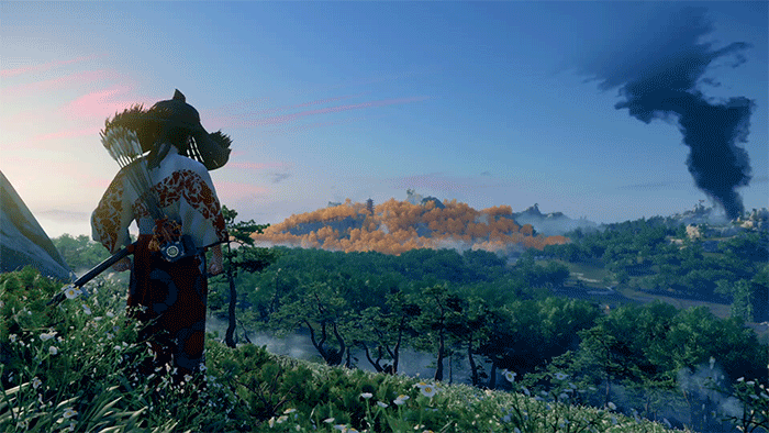 Зато Ghost of Tsushima принесла какой-то невероятно свежий открытый мир. Я никогда не пользовался фоторежимами. Ни в одной игре! Но здесь это словно часть игрового процесса. Остановиться, почувствовать красоту природы или боевой сцены, снять скриншот и с довольной мордочкой поехать дальше рубить монголов. Почему по миру так приятно передвигаться? Вроде бы и активностей, поражающих воображение, нет, но из игры не хочется вылезать. Пока списываю всё на местные красоты и столь любимую мной самурайскую эстетику. Дзин не просто олицетворяет духа мщения. Он – это симбиоз самурая и синоби. Комбинирование техник даёт ему возможность делать то, что было не под силу всем остальным последователям бусидо с катанами.