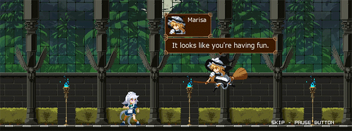 Учитывая способности Сакуи — метание массы клинков и власть над временем — получилась довольно любопытная и недорогая (419р) игрушка. Как и положено в метроидваниях, мы исследуем карту с видом сбоку, собираем новые способности (подкат для прохождения низких тоннелей, двойной прыжок, новые боевые скиллы), проходим забавных боссов, по той или иной причине оказавшихся в игре Ремилии. Верно, боссы — это «живые» персонажи, которых Алая Дьяволица тоже засылает, под разными предлогами, в качестве преград для боевой служанки.