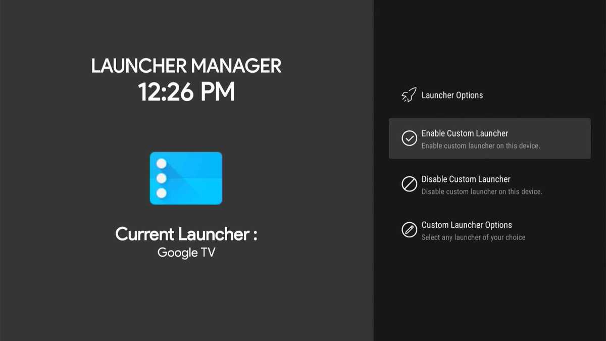 If you want to fully replace Google TV’s standard launcher, you must use a different app called Launcher Manager. It’s only available via sideloading and requires extra configuration to setup. Advanced users who are comfortable with sideloading can follow these instructions: