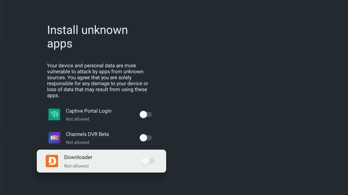Allowing Downloader to install apps from outside the Google Play Store.