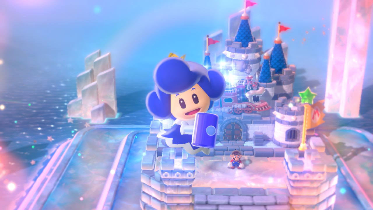 На первый взгляд всё знакомо. Есть карта королевства фей, поделённая на тематические миры. В каждую уже открытую локацию на карте можно зайти и начать прохождение уровня – собирая монетки, бонусы, находя секреты и стремясь за ограниченное, но в целом достаточное время добраться до флага-финиша. Но раз в названии фигурирует 3D, перемещаться можно в трёх измерениях – как на карте мира, так и на самих уровнях. И здесь разработчики с первой секунды начинают всячески развлекаться и экспериментировать – с ракурсами, темпом, игровыми механиками и тем, что в голову придёт. И при всём при этом геймплей причудливо сочетает дух двухмерных Марио с трёхмерными играми. Как? Хотя бы тем, что протагонист перемещается в трёх измерениях, но камера почти всегда остаётся статична и меняет углы обзора лишь по прихоти режиссёра и геймдизайнеров.