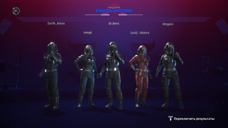 В Star Wars: Squadrons нам дают полноценно поиграть за обе стороны конфликта. Повстанцы, за исключением пары персонажей, включая трандошана Триска, – снова ходячие стереотипы. Имперцы получились на голову интереснее. И хотя мы узнаём соратников по эскадрилье только в коротких диалогах между миссиями, да в кинематографических заставках, этого достаточно, чтобы рассмотреть в пилотах Тай-истребителей личностей. Чего стоит никогда не снимающий шлема Шен, сбитый несколько раз и, буквально, собранный по кусочкам на операционном столе.