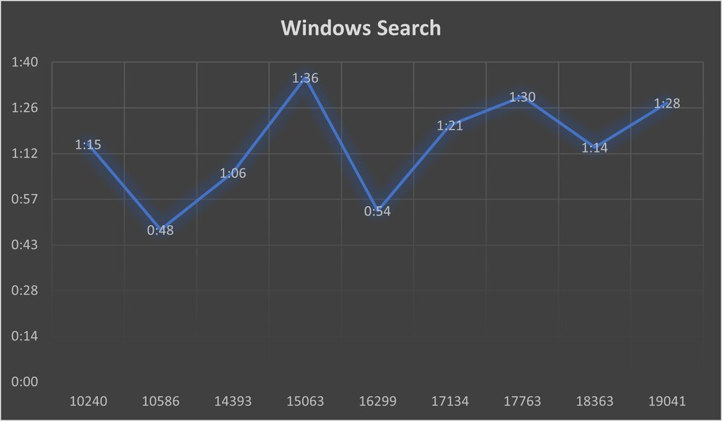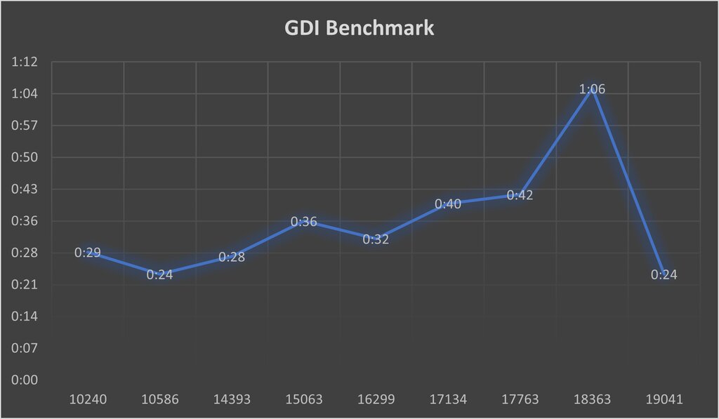 Автор блога NTDEV сравнил скорости разных обновлений Windows 10 по различным пунктам: от времени установки системы и её загрузки/перезагрузки до времени сканирования «Защитника Windows», запуска приложений и подобного. Он сделал это ещё в феврале (последняя протестированная им сборка — 19041), но в СМИ его пост стал популярным только сейчас. В рамках своего эксперимента автор использовал для всех тестов гипервизор Hyper-V, 4 ГБ оперативной памяти, 4 ядра процессора и хранилище с фиксированным объёмом 32 ГБ. Каждый раз системы устанавливались начисто.