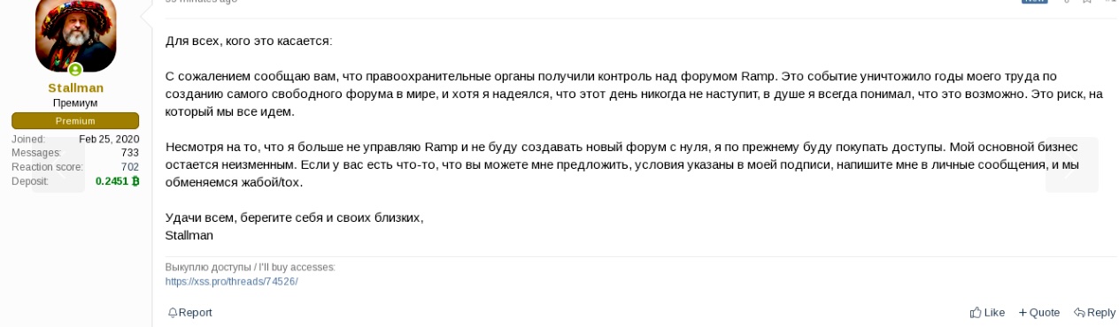 In a message posted to a rebranded XSS site, a purported RAMP member announced the shutdown.