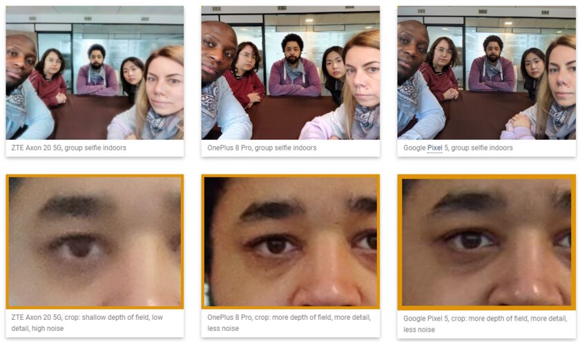 Впрочем, данная оценка мало кого удивила — специалисты DxOMark сообщили, что устройство снимает на фронтальную камеру с безумным количеством шума, неестественно искажает цвета и оттенки кожи, обладает довольно низким динамическим диапазоном, а ещё проблемами с бликами, цветопередачей и резкостью. Более того, помимо «мыльного» качества, данная камера ещё имеет проблемы с глубиной резкости и низкой детализацией, а видео, снятые на «фронталку» помимо идентичных проблем страдают ещё и от различных ореолов, артефактов, плохой стабилизации и проблем при слабом освещении. Фактически, качество съёмки на фронтальную камеру Axon 20 5G ничем не отличается от самых бюджетных смартфонов пятилетней давности. Ниже, к примеру, приведено сравнение качества съёмки ZTE Axon 20 5G с OnePlus 8 Pro и Pixel 5.