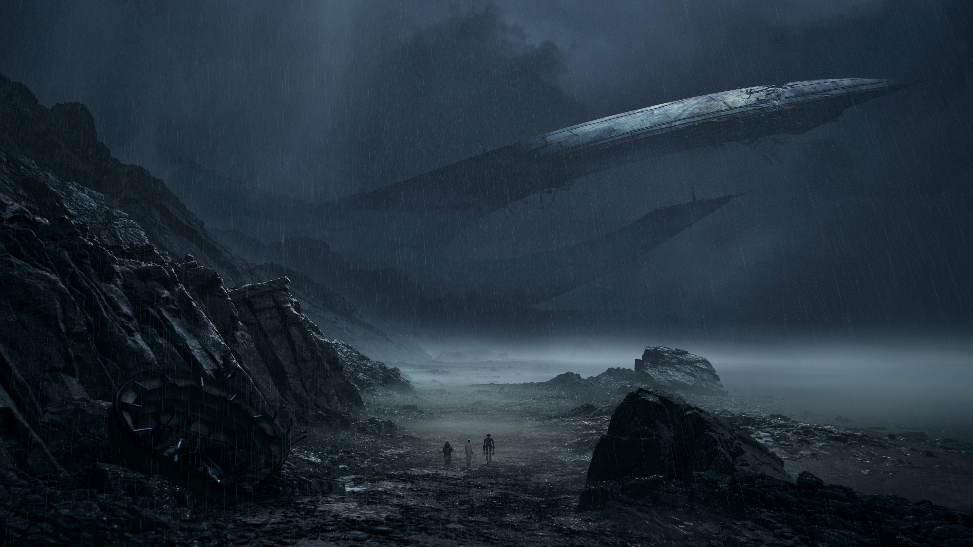 Though Hudson said game is described as “early in development,” a short teaser trailer helps establish at least a partial tone of the project, showing a small crew investigating the ruins of an ancient starship on a desolate, rain-soaked planet.