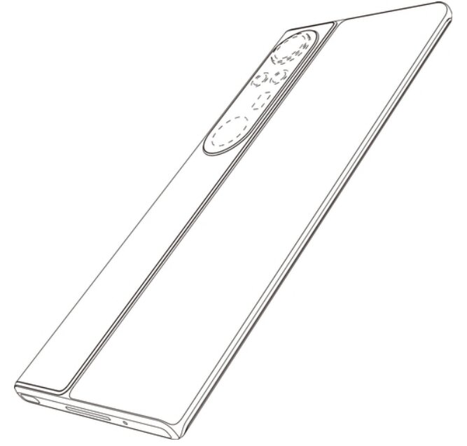 Второй дизайн включает овальный массив камер с двумя большими датчиками и двумя модулями поменьше. На рисунке также изображён прямоугольный элемент — не совсем ясно, это вспышка или отдельная камера перископного типа. Этот вариант во многом похож на Xiaomi Mi 11. Не исключено, что Xiaomi снова будет использовать камеру на 108 мегапикселей, как и в текущей серии флагманов. Особенностью этого дизайна является вертикальная линия, разделяющая заднюю панель на две части. Больше похоже на складную конструкцию, но, видимо, это просто визуальный элемент, предполагающий двухцветную расцветку.